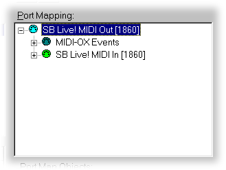 image below shows the Port Map tree for a MidiVerb connected to the in and out