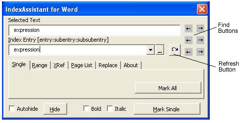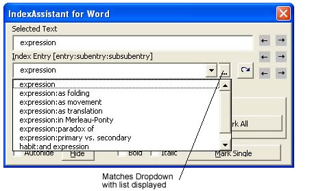 IndexAssistant is software that tremendously improves Microsoft Word’s native indexing functions. Use its intelligent and powerful interface to help you view, maintain and apply a consistent set of index entries; keep track of the structure of your index as you build it; mark ranges of pages with one click; consolidate scattered single page index entries into ranges with one click; navigate and edit index entries in your document; and maintain cross references. A tremendous time and organizational saving over Word’s own interface when it comes time to index a manuscript.